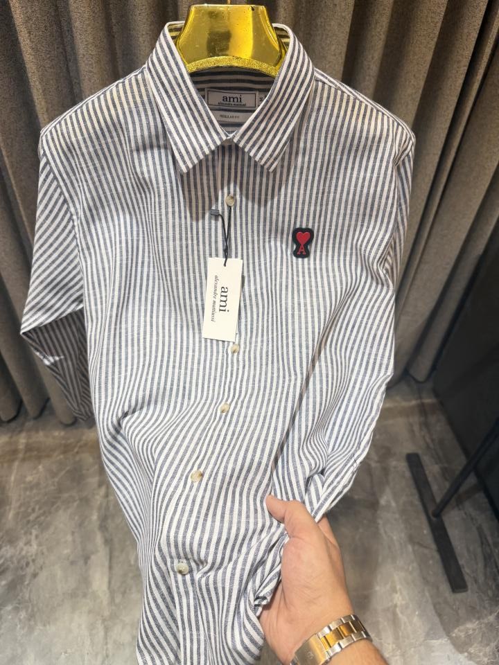 Ami paris Skyblue Pure Linen Brand logo embossed