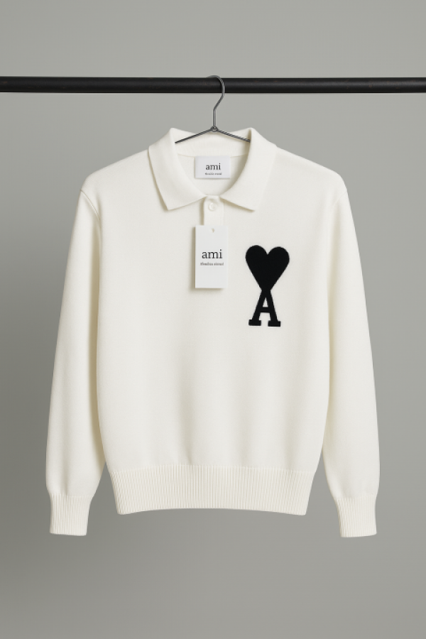 Ami Paris White Knitted Polo Full sleeves IMPORTED