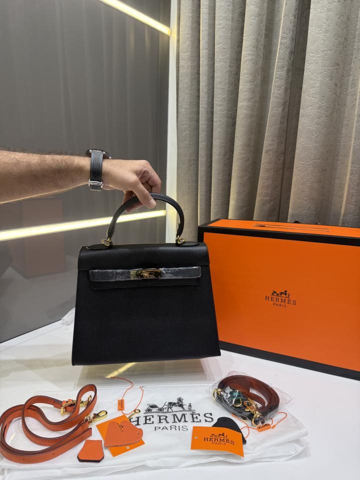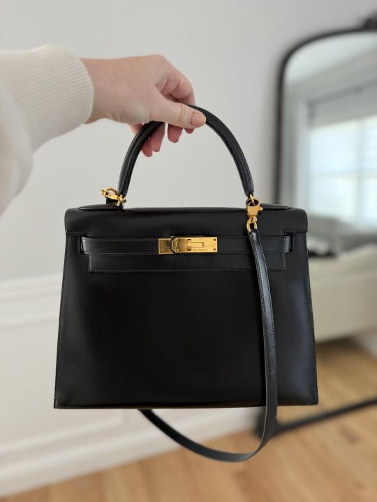 HERME.S KELY 28 SELLIER BAG BLACK LEATHER PREMIUM WITH OG MAGNETIC BOX