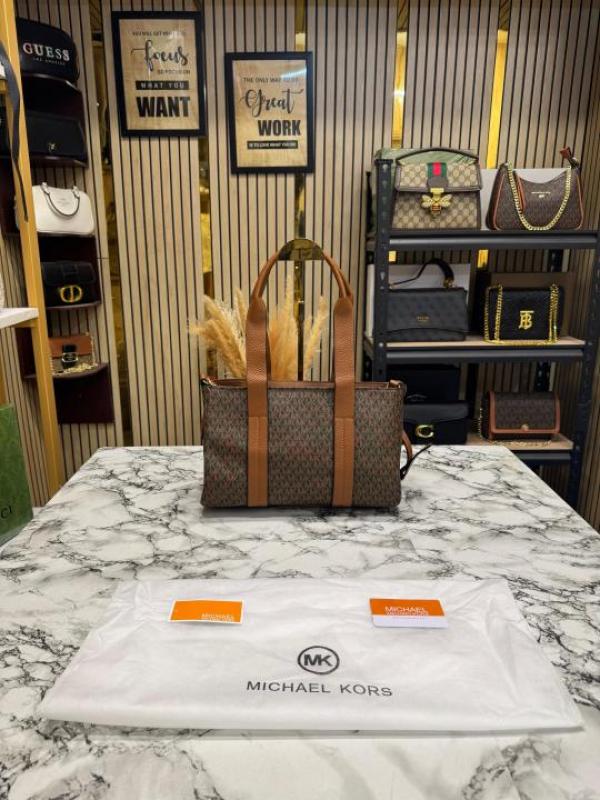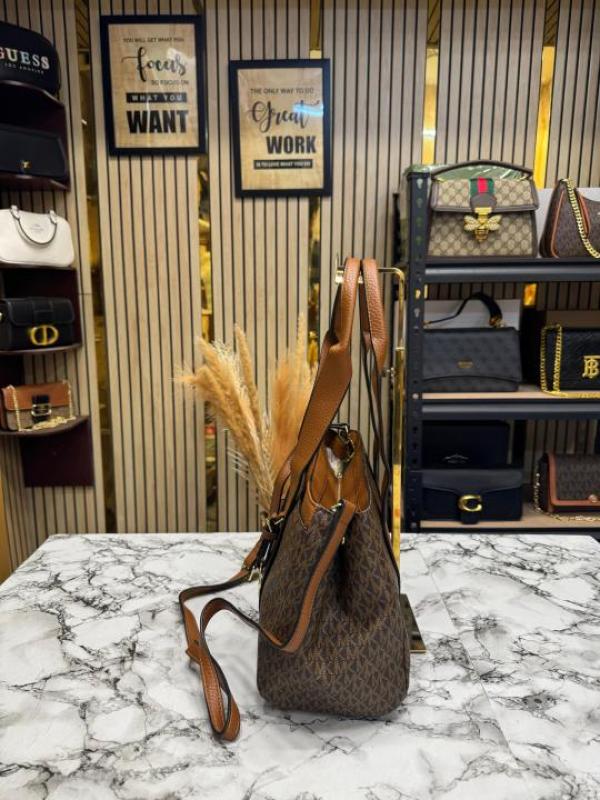 Michael_Kors Cynthia Signature Logo Satchel Bag With Dust Bag (Brown) (F-2001)