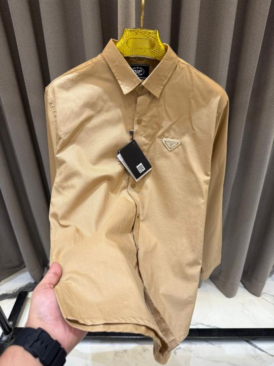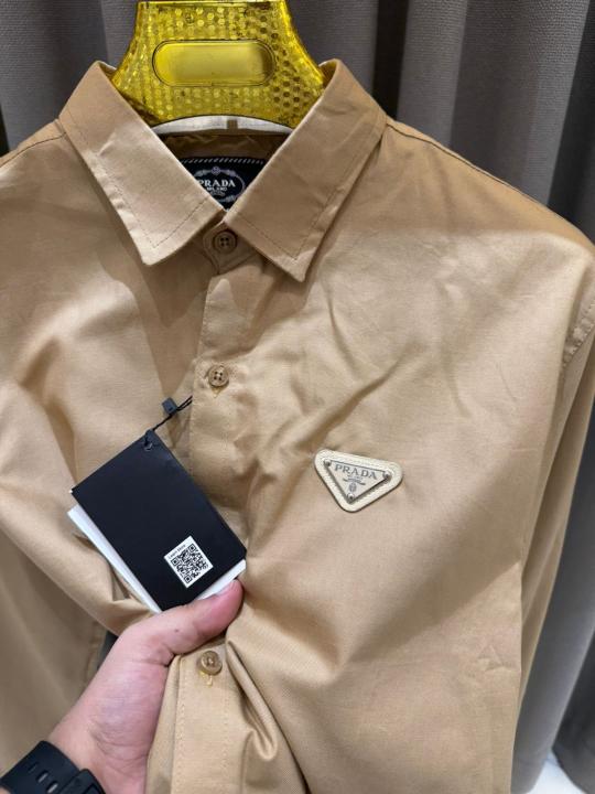 Prad_a Milano Chest Logo Full Sleeves Shirt Brown