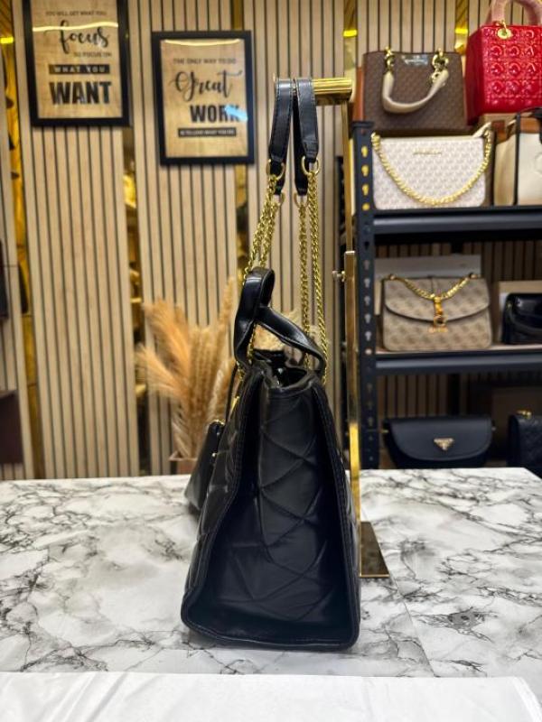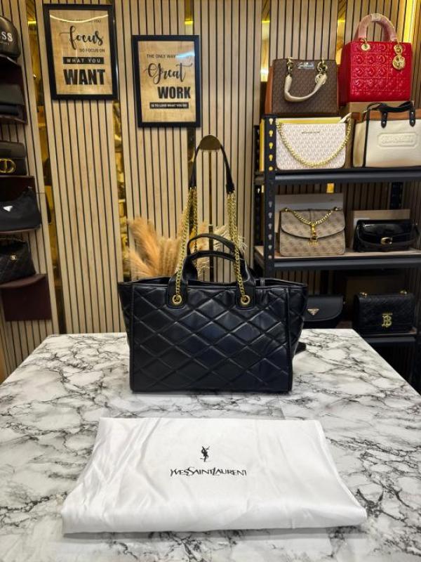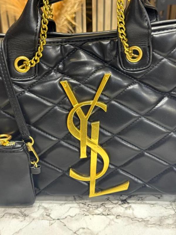 Ysl Yves Saint Laurent Bolse De Playa Quilted Hand Bag With Matching Wallet includes Dust Bag (Black-1476)